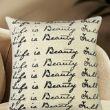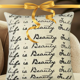 Enjoy this simple message on a generous stonewash linen pillow, a perfectly whimsical addition to the living room, den, bedroom or office space. An ideal gift for the home curator, the college bound graduate, newlyweds or anyone at all!