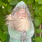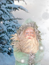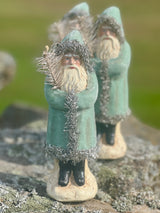 Let this handsome Santa, sporting a light blue jacket with tinsel trim, be part of your inspired holiday decor this season. With his soft hue, humble feather tree and serene vibe, you might want to keep him close all winter long.