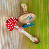 Heirloom Glass Mushroom Ornaments, Pair