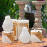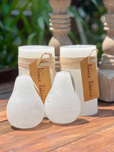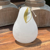 Pear: 3 inches x 4.5 inches tall, 40 hour burn time