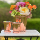 Experience the timeless elegance of these handsome Hammered Copper Bead Julep Cups. With a distinctive equestrian vibe, bright copper finish, hammered sides and masterful bead detailing, these sophisticated copper cups make a showy addition to your tabletop or bar cart. And they will surely make your fresh mint juleps taste a bit more special every time!