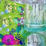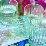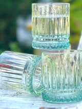 Luminous Blue Green Watercolor Aquarelle Fluted Glassware