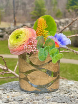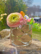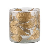 Nature's artifacts are forever conserved in these beautiful glass hurricane candle holders. Gold leaves, enameled onto simple glass silhouettes, present an intriguing luminary for a candle or a pretty little vessel for a few stems. Or do both down you table for stunning display!