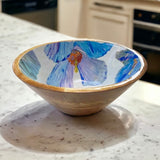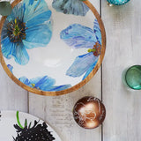Himalayan Blue Poppies Enamel and Wood Serving Bowl
