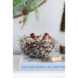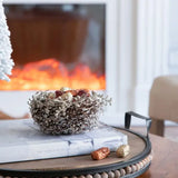Time for some fresh, calm and crisp winter decor, starting with this leafy iced twig nest with silver details. This exquisite piece of winter decor brings nature indoors in a most authentic and elegant way. Add to any vignette, rest atop a stack of books or fill with wrapped candies bedside. Crafted with meticulous attention to detail, this wintry forest artifact beautifully captures the look of a frost-kissed bird's nest. A beautiful homage to this season ... and the next!