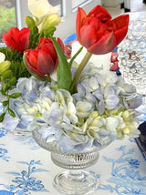 It was love at first sight with these footed glass bowls from the whimsical designers at Brooklyn-based Bomshbee. Inspired by the shapes and sparkle of crystal chandeliers, each vessel boasts a different silhouette begging you to indulge in a little tabletop fun. The possibilities are endless!