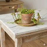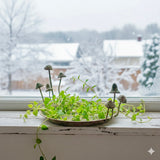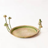 Add woodland charm to your space with this whimsical rustic metal tray, featuring sculpted mushrooms sprouting playfully from the rim. With an earthy, weathered finish and enchanted forest vibe, it's perfect for resting a potted plant, displaying candles or creating seasonal vignettes. A fun and fanciful conversation piece that blends art and function effortlessly.